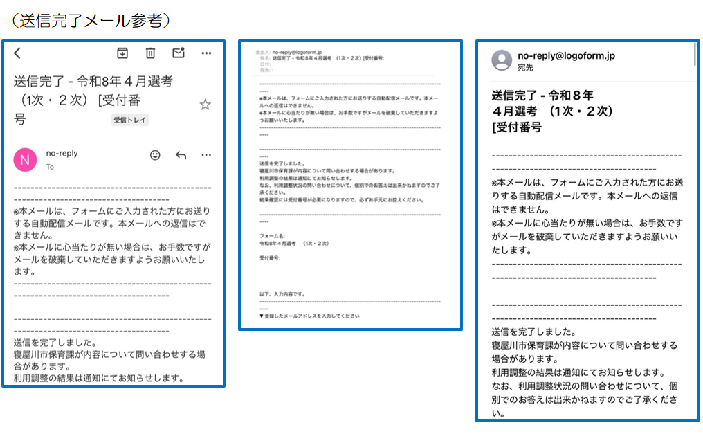※送信完了後は、 「 送信 完了 」 メールがお手元に届いていることをご確認ください。